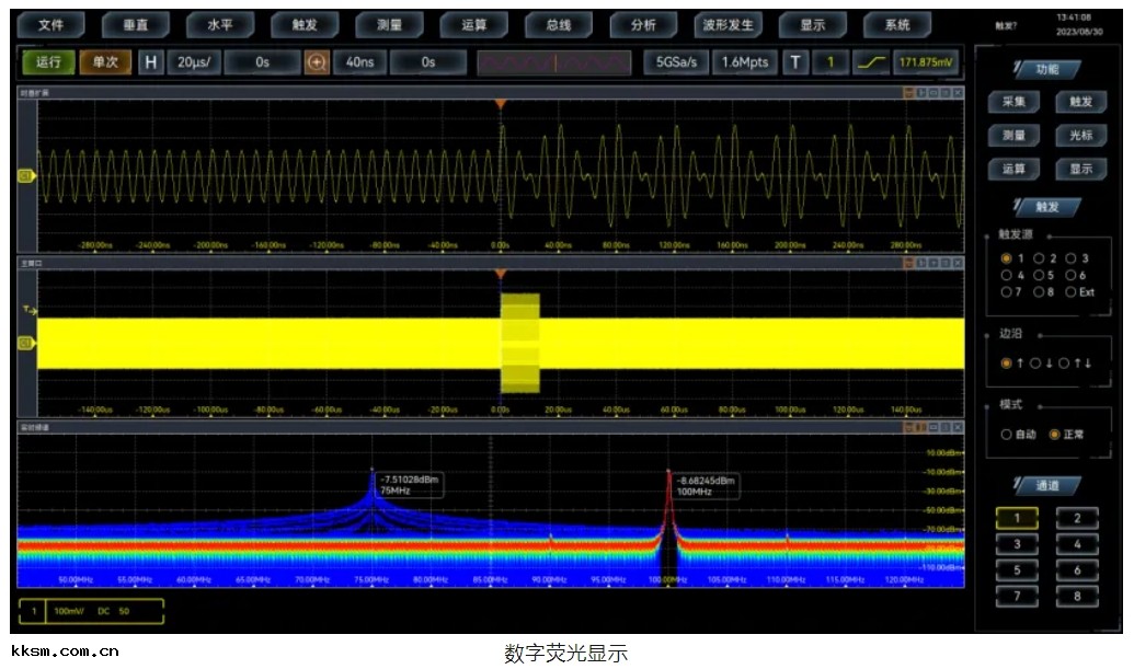 同時採用數字螢光(guāng)疊加處理(lǐ)顯示技(jì)術,大(dà)大(dà)提(tí)高(gāo)了(le)捕獲瞬態信號的概率 ,增強(qiáng)了(le)查看偶發事(shì)件的能力 。