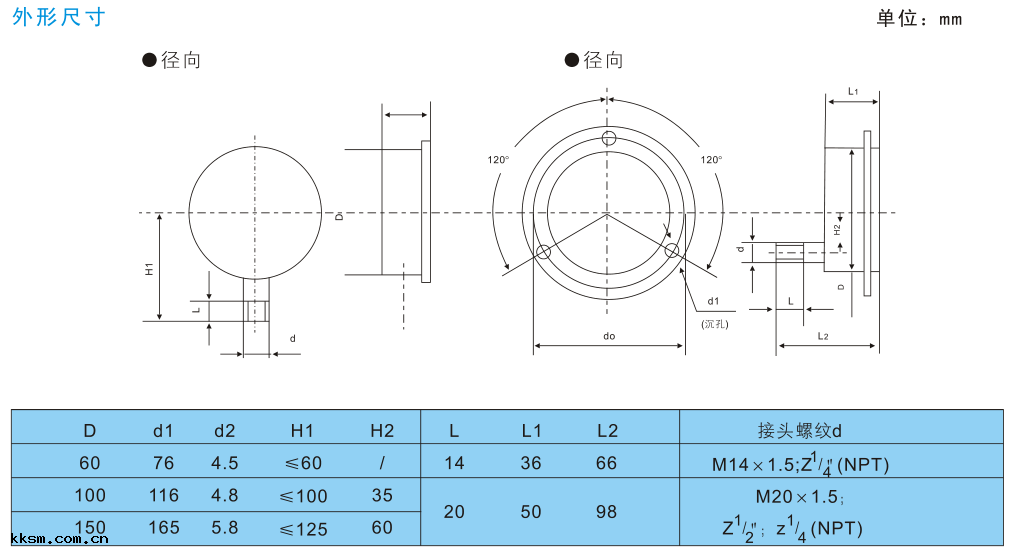 | 軸(zhóu)向(xiàng)帶前邊不鏽鋼壓力表 | Y-63B-F | 2.5 | |