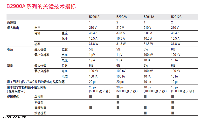 、測量分辨率(lǜ)、小(xiǎo)時間間隔、支(zhī)持的顯示模(mó)式等) 和(hé)所包含的SMU 通道(dào)數量( 一個