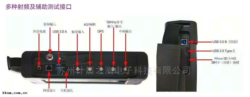 多(duō)樣的(de)輔助測試(shì)接(jiē)口及數(shù)字(zì)接(jiē)口 :10MHz 參(cān)考(kǎo)輸(shū)入輸(shū)出、GPS/北(běi)鬥天(tiān)線 、零掃寬中頻輸(shū)出 、